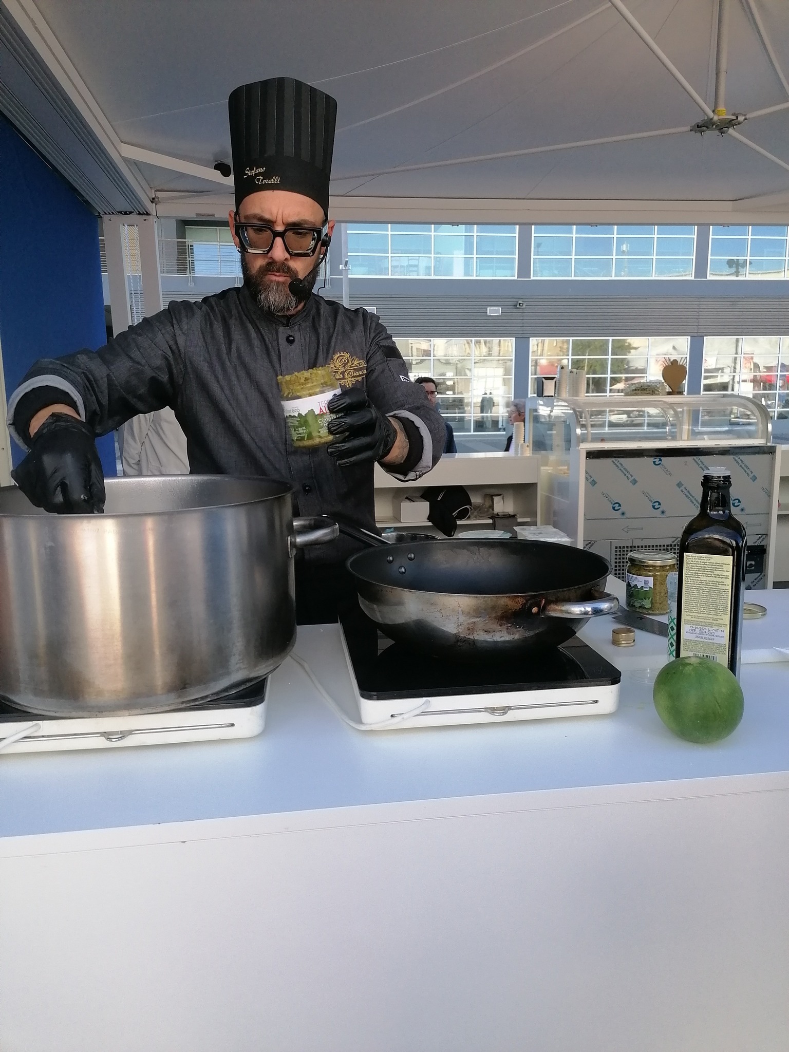 Il bilancio della partecipazione del consorzio Oltre / la rete di imprese a Bari Agrilevante by EIMA è più che positivo. Una bella occasione per far conoscere i vari prodotti, anche attraverso la bravura dello chef Stefano Torelli che ha animato i momenti di show cooking preparando piatti di pasta o prelibati assaggi. utilizzando prodotti come patè di cime di rapa, pomodori secchi sott’olio, passata di pomodoro bio realizzati sul bene confiscato alla mafia di TERRA AUT gestito dalla Cooperativa sociale Altereco. Sapori sapientemente conditi sulla pasta biologica a marchio Centonove/novantasei. Nel corso della quattro giorni spazio anche all’olio extravergine “Volìo” realizzato da Ortovolante, che favorsice l’inclusione socio-lavorativa di persone con fragilità attraverso attività di agricoltura sociale, e al miele millefiori, la cui realizzazione vede il coinvolgimento degli ospiti di Casa per la Vita Brecciolosa.
