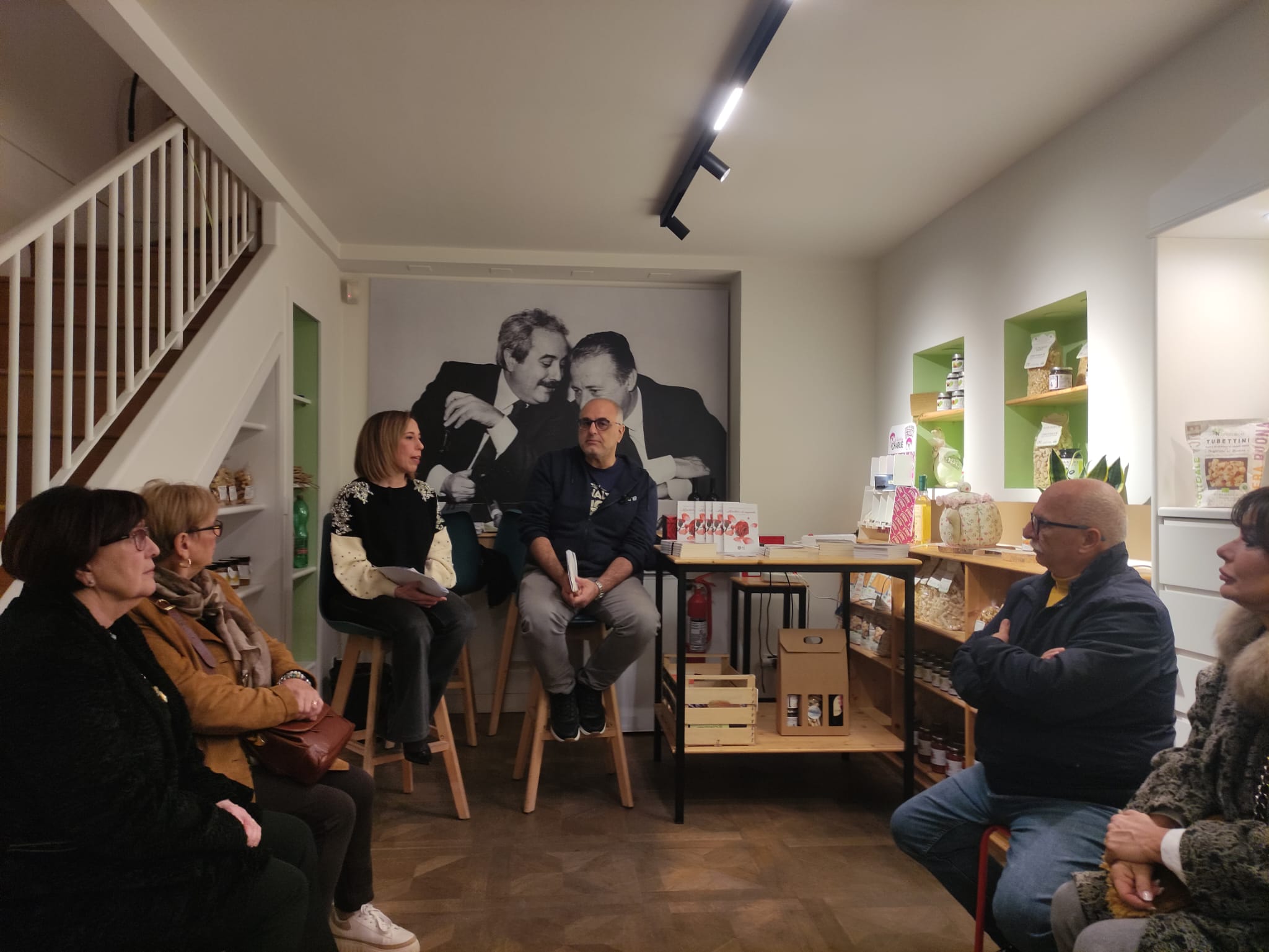 Un momento di condivisione e di ascolto, come quello che anima la penna dei poeti che mettono su carte le loro emozioni, quelle che arrivano dal mondo esterno, dalle persone che incontrano. Lo dimostra anche la seconda parte della silloge poetica di Maria Giovanna intitolata “La canzone del cuore”. Un progetto social nato quasi per caso, ascoltando le canzoni inviate dai suoi follower. Titoli di poesia prevalentemente di donna che viaggiano su brani di canzoni differenti. L’autrice è entrata nelle loro storie, ne ha fatto dei versi, le ha condivise. Lo ha fatto anche con me, il moderatore della serata, tirando fuori una poesia inaspettata che dalla canzone “Giudizi universali” di Samuele Bersani scruta con attenzione la vita di gliel’ha proposta. Forse la sua capacità di leggere in profondità le persone lo spiega con la sua ultima opera: «Sono in rima, / senza tema, / io strofa mail ultimata / e quella appena cominciata. / Sono io, sono mia, sono poesia». La serata, come sempre, si è conclusa con una piccola degustazione di prodotti che è possibile trovare tra gli scaffali della bottega del consorzio Oltre la rete di imprese.